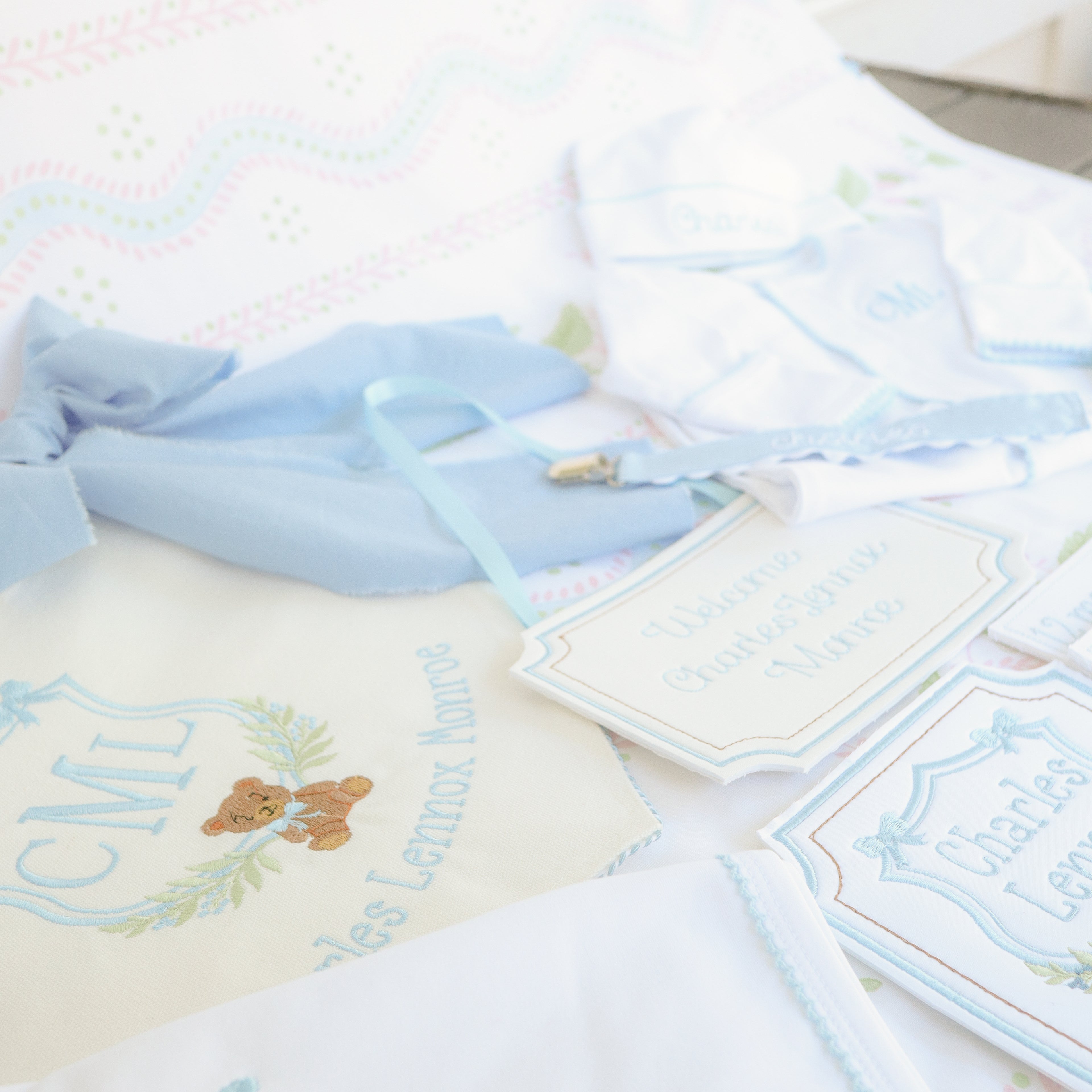 Our individual keepsakes are thoughtfully handcrafted to coordinate beautifully with your baby’s nursery theme, offering timeless embroidery and meaningful details designed to be cherished for years to come. While each piece may be purchased individually, many families choose our curated bundles for added value and a seamlessly coordinated heirloom collection.