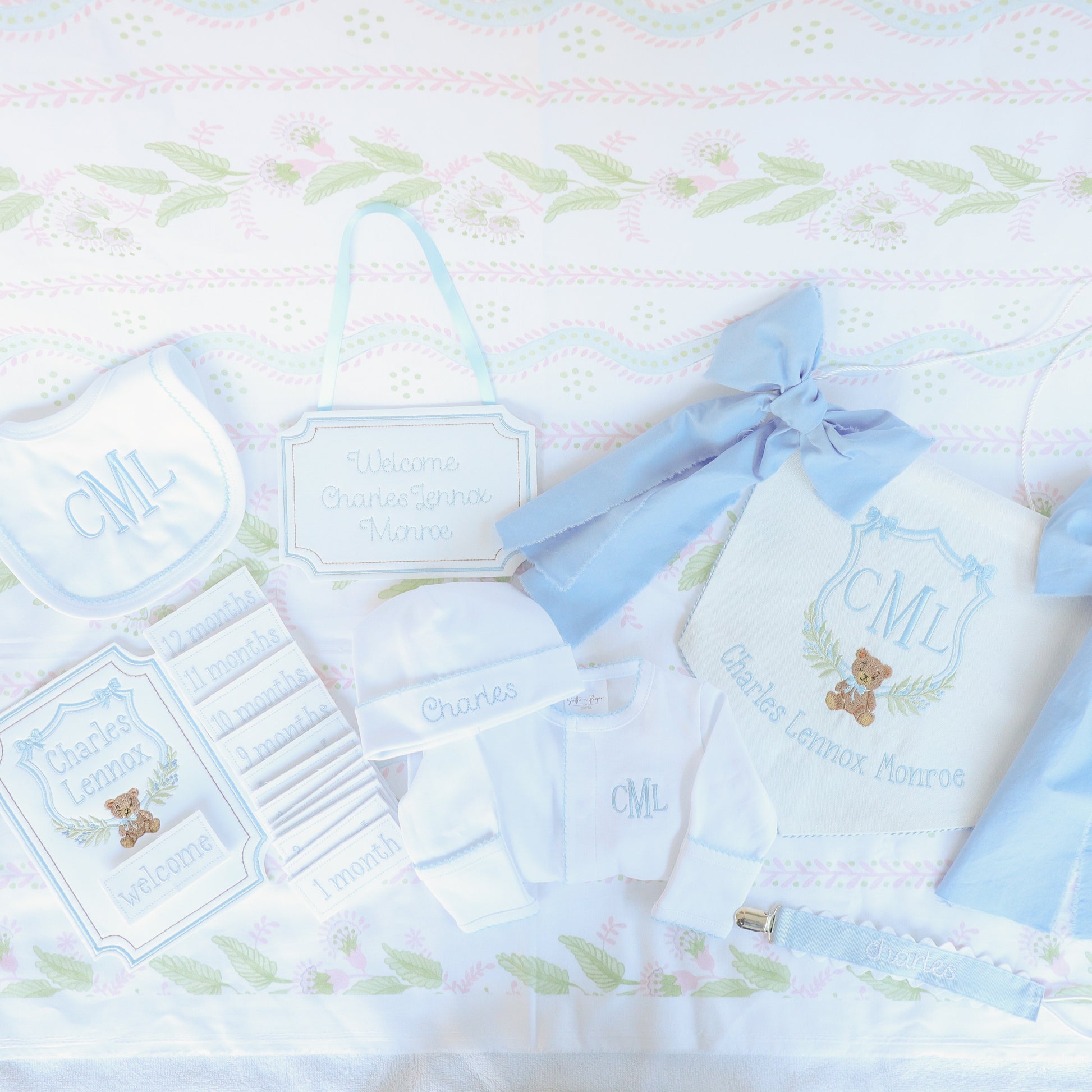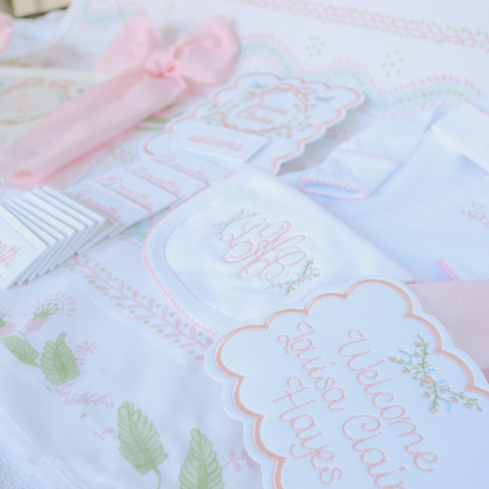 The Signature Bundle is a beautifully curated collection of custom baby keepsakes, designed to celebrate your little one with timeless style and meaningful detail. Each bundle is crafted to coordinate seamlessly with your baby’s nursery theme, creating a cohesive look that feels both personal and enduring.